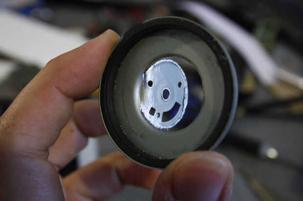 Para esto utilizado parte de un viejo motor de unidad de disquete, en su mayor parte usted solo falta encontrar algo conveniente para ustedes. La mayoría del tiempo usted podría probablemente pegue el anillo de filtro en su lugar directamente.