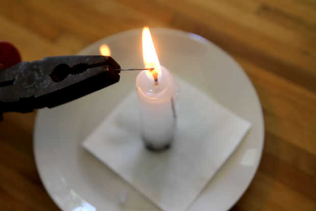 El primer paso es utilizar cualquier método para hacer pequeños agujeros en la parte inferior de una botella de plástico. Usé una aguja calentada con una vela para hacer los agujeros en el plástico. También puede usar clavos o un cuchillo del ejército suizo. Los agujeros deben ser muy pequeños, de lo contrario el carbón activado que pones dentro de la botella saldrá de la botella.