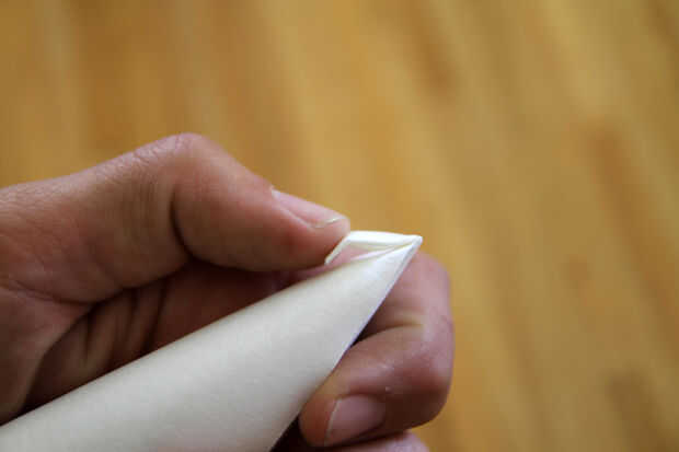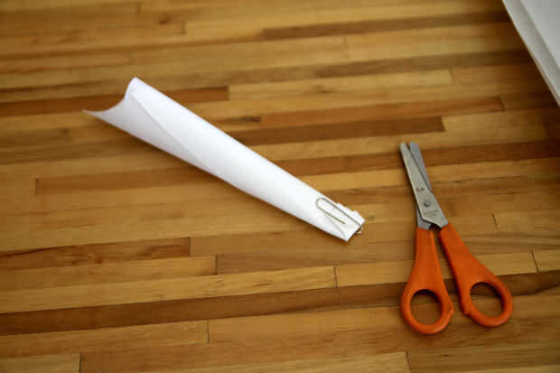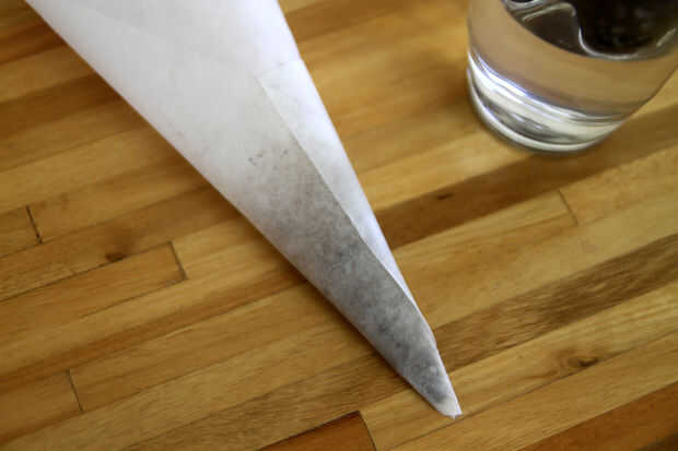Utilicé papel de filtro que compré en una tienda de suministro de productos químicos, pero puede comprar el papel de filtro en línea o utilizar filtros de papel café, un pedazo de toalla de papel de cocina o un trozo de tela. Me hicieron un cono y utiliza un clip al final para cerrar el orificio en el extremo del cono de papel. Luego coloque el cono de papel en su botella de plástico llenado de carbón activado.