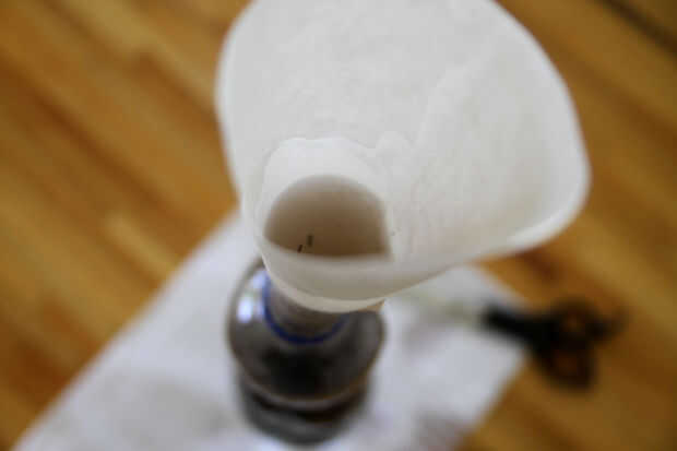 Paso 3: Uso de filtro de papel, un trozo de paño o cocina toalla de papel para pre filtro partículas grandes
