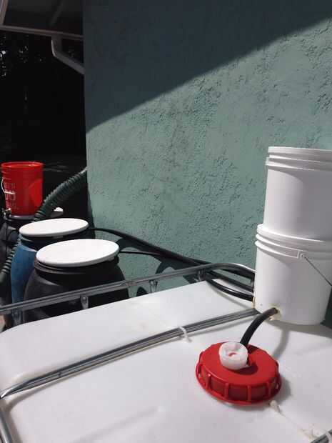 Finalmente poner las tapas en sus respectivos cubos y cortar su longitudes de manguera sin embargo que usted desea. Pongo a la mayoría de las mangueras en mi barriles y uno de ellos en un orificio de 3/4" que perforaron en la parte superior de mi bolsa de 275 galones.