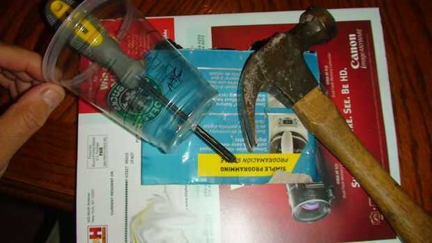 la parte superior de la burbuja vino de una bebida de café de crema batida y un tornillos de botella de soda de 2 litros esta bien, crear un depósito para el agua sucia en.