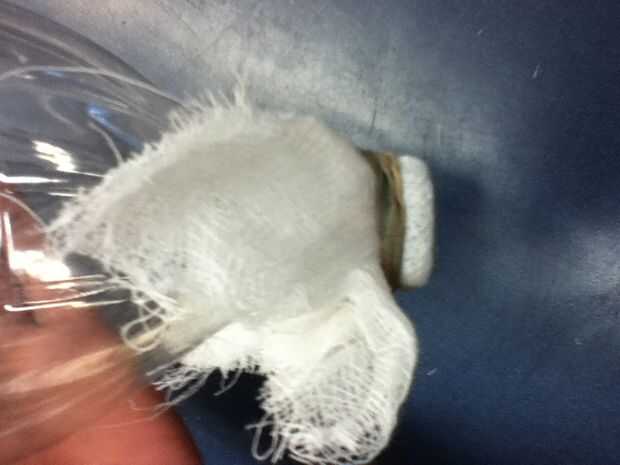 Paso 2: Sacar la tapa de la botella y poner paño de queso.