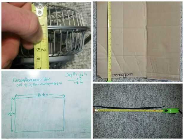 2) sabiendo la circunferencia, se puede empezar a medir la pieza de cartón necesario para caber sobre el ventilador. Nos dibujo a un rectángulo en la cartulina. Dicho rectángulo tendrá una longitud igual a la circunferencia del ventilador (con un poco extra para el traslapo) y una anchura igual a la longitud deseada del tubo de cartón. En su pedazo de cartón, dibujar una línea igual a la circunferencia del ventilador además de.25 pulgadas. (El cuarto extra de pulgada permite superposición para que pueda crear un cilindro con este cartón.)
