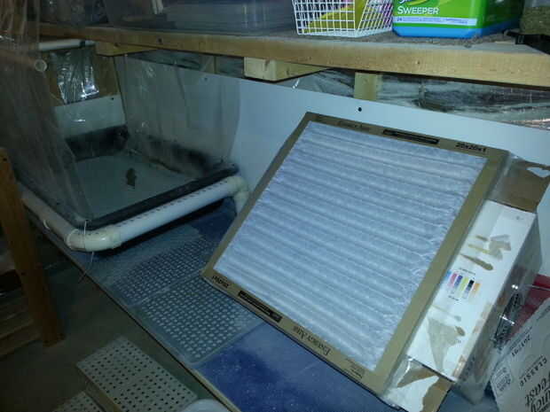 El filtro de aire era aproximadamente $2,50 de la ferretería. No creo que los filtros baratos dólar mantendría gran parte del polvo de arena fina. Este filtro fue bastante completo después de 2 meses. Redujo significativamente la cantidad de polvo en las superficies de la habitación.