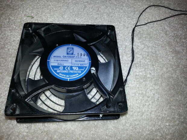 El ventilador está valorado en 110 CFM. Si tuvieras algunos fans de muffin de algunos ordenadores de sobremesa antiguos, puede utilizar par para obtener el CFM para arriba un poco.
