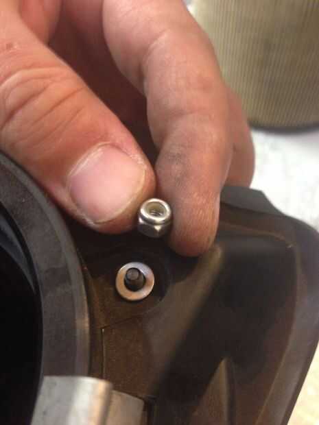 5) Coloque la arandela y las tuercas sobre las cabezas de los pernos y apriete con su zócalo de 7 milímetros.