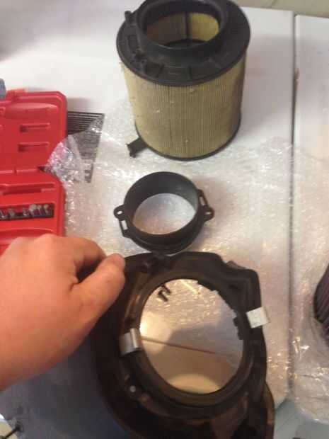 4) poner el filtro nuevo en la alineación de las cabezas de los pernos conectados a los orificios existentes en la tapa de la caja. Asegúrese de que ha asentado firmemente, mayo requieren un poco de fuerza bruto para alinear las cabezas de los pernos.