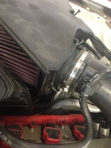 5) Apriete la abrazadera de la manguera, compruebe que ha asentado firmemente a la pieza de extensión. No quiere esto a soltarse mientras tu conduces! Pero apriete a mano solamente, no quieren romper la carcasa.