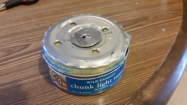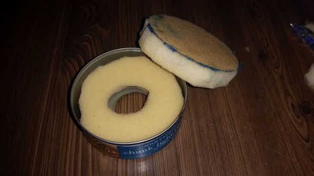 2. Coloque la espuma en la lata, coloque la tapa en y poner la lavadora encima para estar listo para el uso final