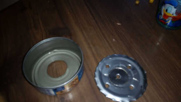 1. Añadir el espacio en blanco se corta desde la parte inferior de la lata en la parte superior de la lata para agregar como una arandela de apoyo.