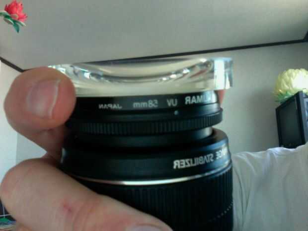 La lente hace cosas diferentes, dependiendo de la forma de la concavidad se enfrenta. Para fotos limpiamos, con menos distorsión, sujete la lente de la lente directamente contra la lente de la cámara. Para un poco más de distorsión, tire es unos cms, como se muestra en la foto. Por esta razón que no sellen, me gusta la variedad que se puede tener mediante el ajuste de la distancia de las lentes.