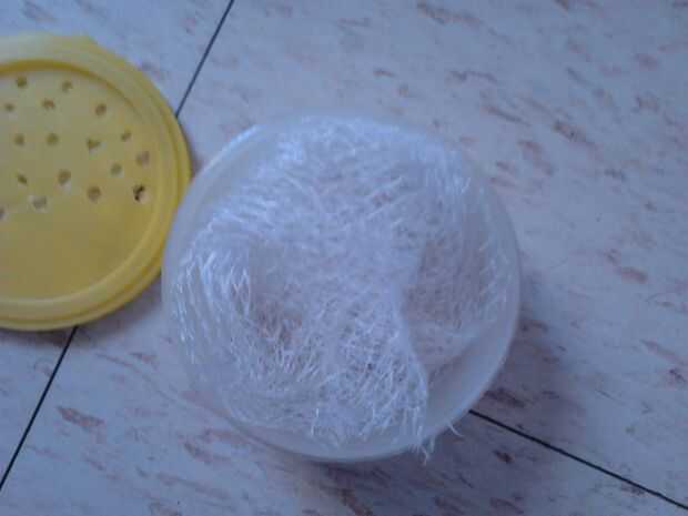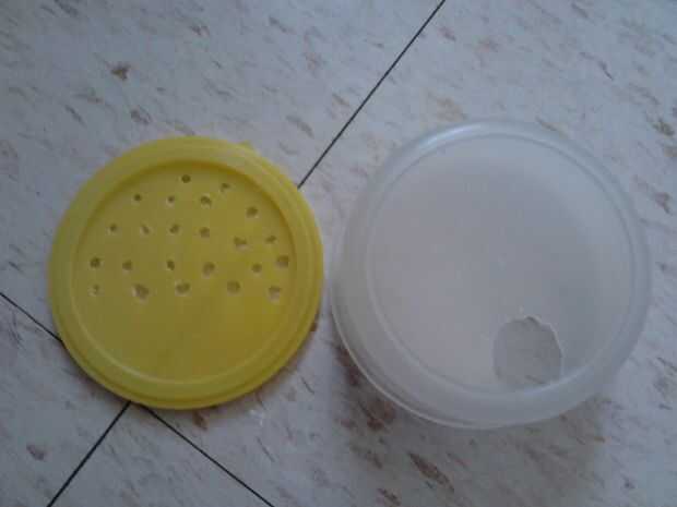 Vamos a hacer un agujero como lo hicimos usando marcador y manguera pero en la parte inferior como muestra la imagen y hacer algunos agujeros que te cubra lo suficiente para utilizar la mitad de la cubierta de te. Poner un trozo de malla de bolas o algo como eso dentro de la receta y lo cerramos