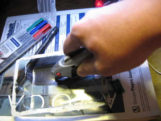 es fácil de hacer esto. simplemente corte una pieza más de la flash para que tenga una pieza a conservar o cinta en el lugar. Si tienes una cámara desechable, lo desarma y sacar la pieza de plástico ir al siguiente paso!