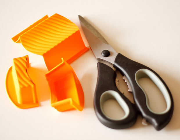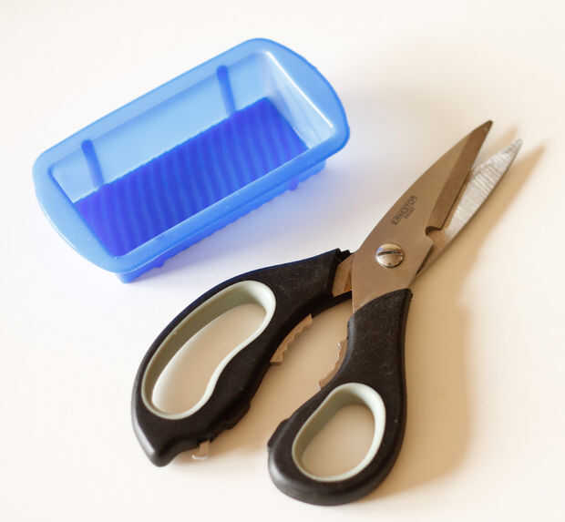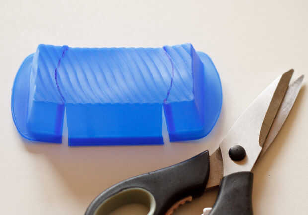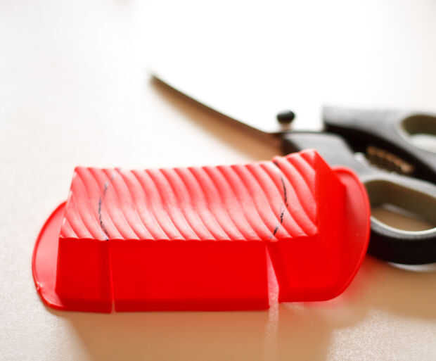 Cortar los moldes con el mismo ancho de la cabeza del flash y dibujar una forma redondeada sobre los lados más cortos de la superficie frontal, corte siguiendo la curva. No para todos los tres contenedores y mantenga la silicona scraps para otros proyectos.
