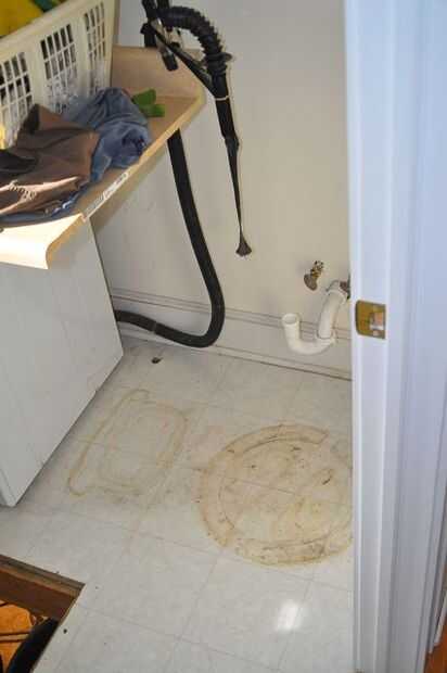 Medir donde el centro del desagüe está en el lavadero y luego marque esa misma distancia en el piso. Perfore un agujero a través del suelo hay (Asegúrese de un travesaño de piso no está directamente abajo) con un agujero de 2".