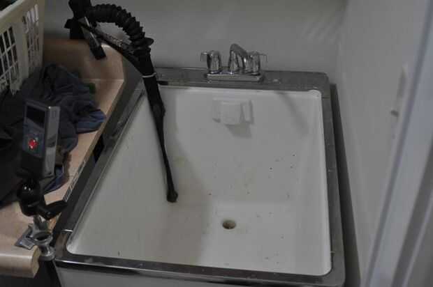 Enrosque el tubo de nuevo en la parte inferior de la tina de lavado.