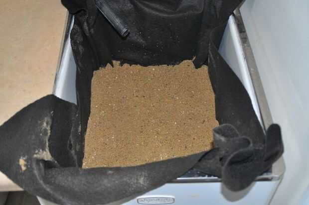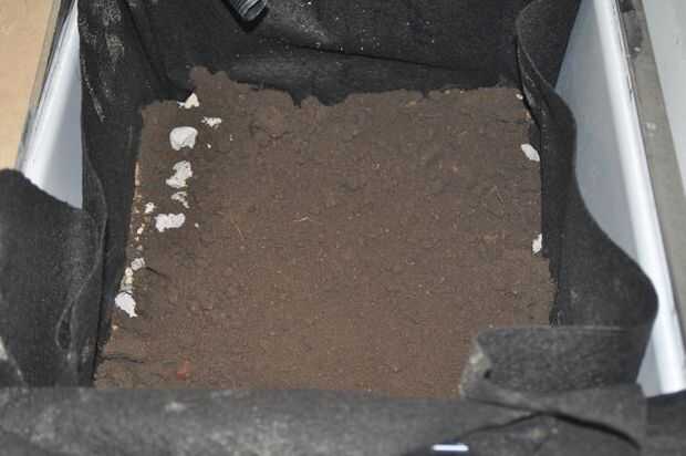 La tela de jardinería está allí para impedir que la arena se trabaja su manera abajo en el desagüe. Puesto que la tela es flexible, usted tendrá que sostenga detrás del camino mientras que agrega la arena y la suciedad. Si tienes 2" abrazaderas de resorte alrededor, ésos trabajo bien para fijar a la tela hacia atrás también.