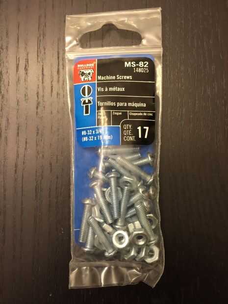 Máquina de tornillos y tuercas (MS-82) [#8-32 x 19MM] x (esta build usa 6 pero puede 10) = $.97