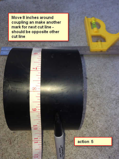 Mover 8 pulgadas alrededor de una marca de acoplamiento de otra marca para la siguiente línea de corte, debe ser opuesto otra línea de corte.
