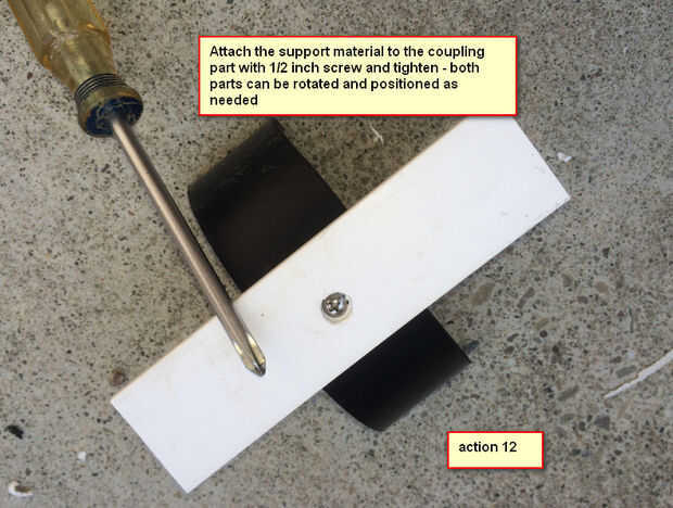Coloque el material de apoyo a la pieza de acoplamiento con el tornillo de 1/2 pulgada y apriete - ambas partes pueden ser giradas y posicionadas según sea necesario