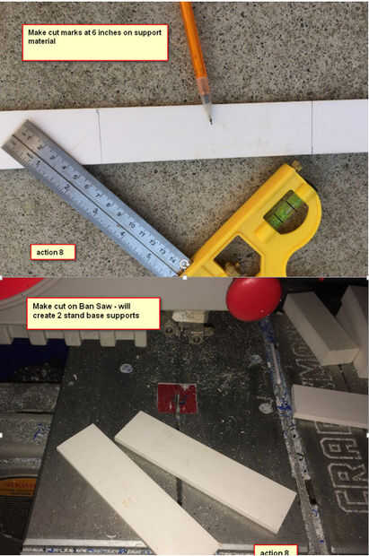 Hacer marcas de cortes en 6 pulgadas de material de apoyo - realizar corte de Ban VI - va a crear 2 soportes base de soporte