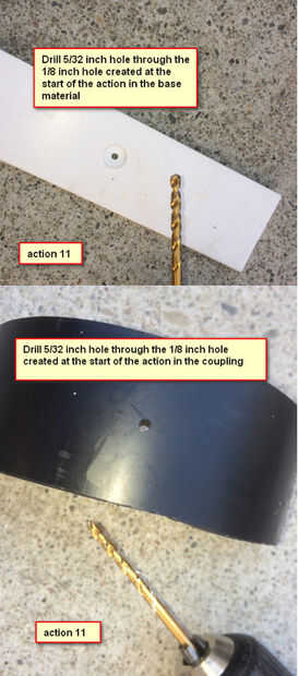 Taladro de 5/32 pulgadas a través del orificio de 1/8 de pulgada, creado al inicio de la acción en la materia prima--taladro de 5/32 pulgadas a través del orificio de 1/8 de pulgada, creado al inicio de la acción en el acoplamiento