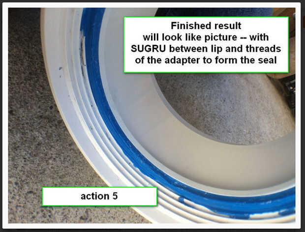 Resultado final se verá como la imagen--con SUGRU entre el labio e hilos de rosca del adaptador para formar el sello. Acción terminada se verá como se muestra en la acción foto - 5 arriba.