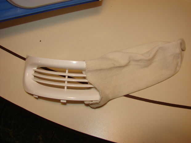 Coloque bolsa de filtro en la rejilla de entrada de aire y estire y doble aleta del exceso en el interior de la rejilla de entrada de aire.