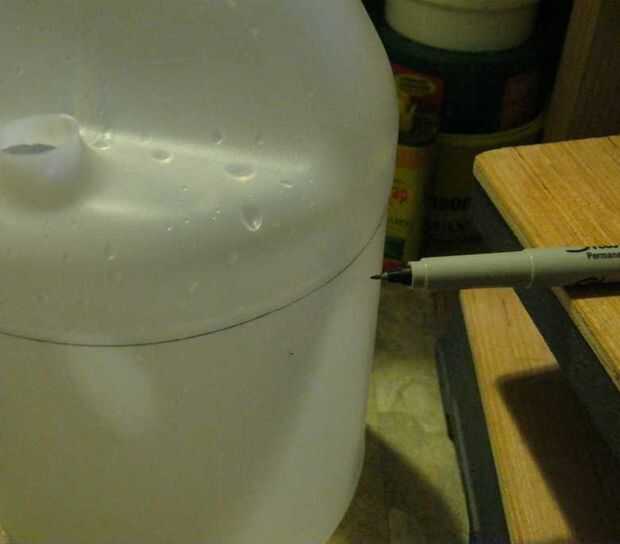 2. Mantener el marcador fijo y girar la botella para marcar el nivel.