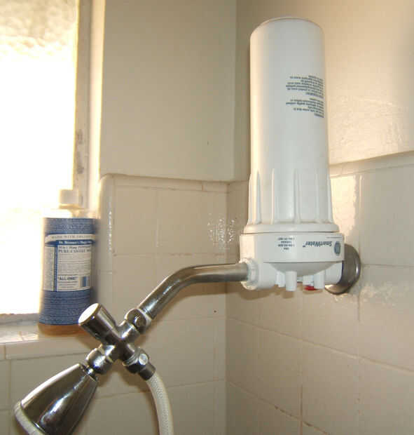 Ahora poner alguna cinta de teflón en el niple de tubería que sale de la pared. El cuerpo del filtro y enroscar todo. Puede colgar hacia abajo o punto para arriba no importa.