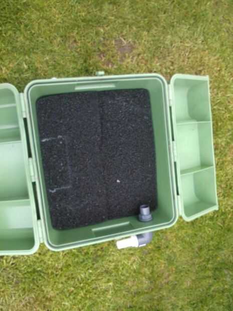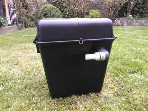 mi primer instructable. he hecho un sistema filtración del estanque de smal de chatarra. Utilizando un inviromentbox residuos tóxicos que se encuentran en muchos pueblos de Bélgica casas sin ningún uso. Solo tengo que comprar un filtro de unas algunas conexiones. La elección que hice fue porque este cuadro es muy fuerte en iniciar resistente contra productos pesados. mi filtro más grande está hecho de chatarra de flexibele protección del tubo. entre el filtro negro y tubos pequeños te coloqué una filtersack con muy pequeña argex (o residuos de coca-cola). (no en fotos) .cokes también hacer el trabajo.