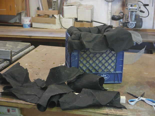 El interior de la línea con un pedazo de tela del filtro (usé un 4' x 4' pieza) luego cortar la tela para permitir una proyección de 4 a 6". Luego meta a la tela que sobresalen entre la lana de roca y el cajón.