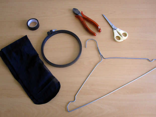 Para el aro de bordar de 6" me pagan $2 dólares y $1 por los medias. La cinta negra era algo tenía que poner alrededor y la percha acero... bueno... deja de decir que me falta de mi armario ahora :)