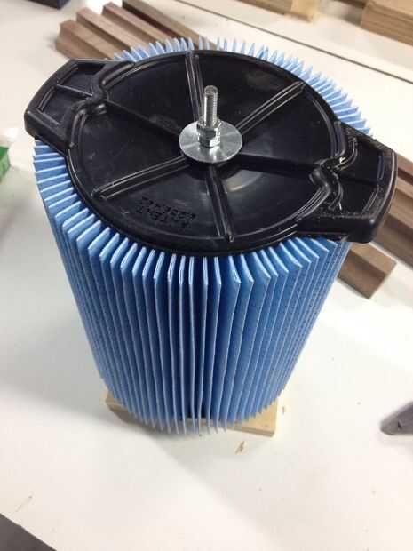Coloque el filtro encima de la unidad y pase la varilla por el orificio en la parte superior del filtro. Poner la lavadora y dos tuercas a segura el filtro hacia abajo.