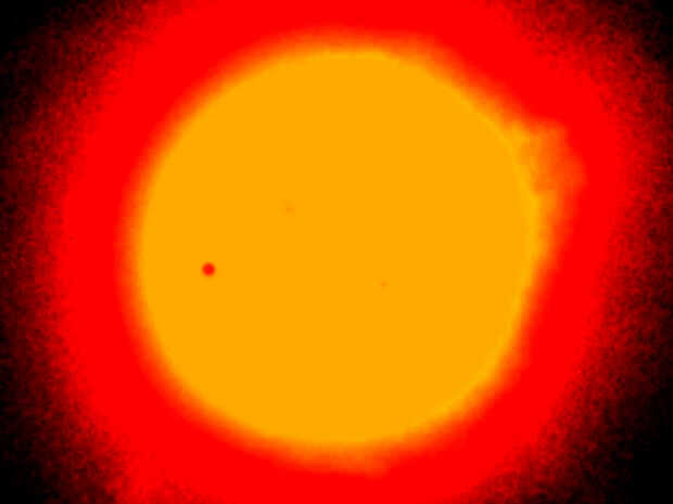 Esto fue tomada durante el tránsito de Venus pasado 06 de junio de 2012. Color de filtro solar DIY es de tono azulado, editado y cambiado a yellow-orange apropiado para ver como el sol. Más del tránsito de Venus aquí.
