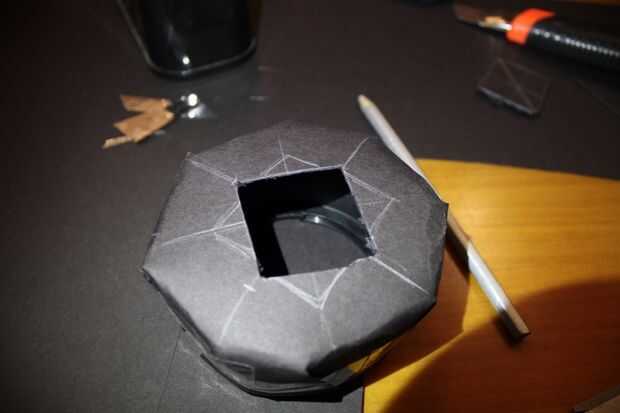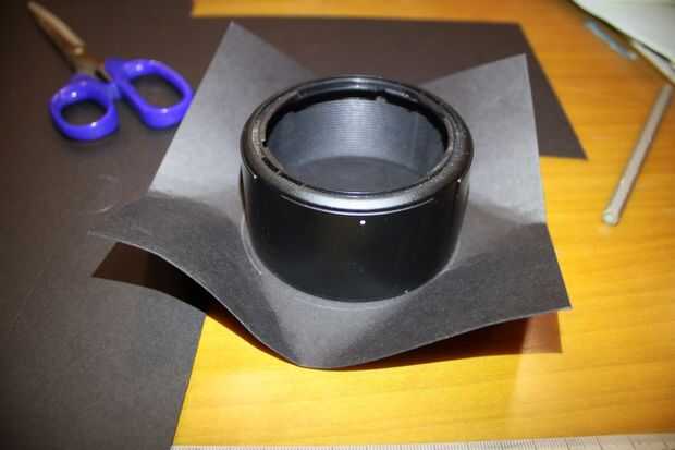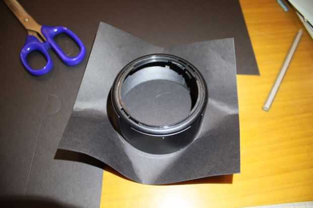 Tomar un cartón negro y traza la circunferencia exterior de la campana de la lente, que corte un cuadrado más grande con el círculo en su centro.