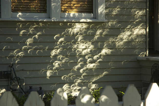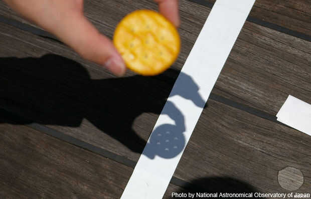 Usted puede usar un colador que se proyectan muchos pequeños eclipses, los espacios entre la hoja de un árbol, el puño, se pueden cruzar los dedos, uso galletas... nada tiene un agujero!