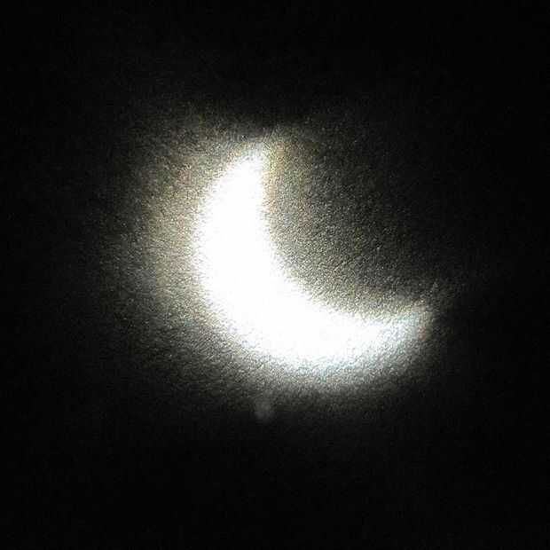 Como el nombre del agujero de alfiler es solo... un agujero, un agujero pequeño. No voy a explicar cómo y por qué funciona un agujero de alfiler, en internet usted puede encontrar toneladas de tutoriales, explicaciones y así sucesivamente, también cámaras estenopeicas existe, son muy fascinantes y fresco. Un pequeño agujero con el dedo también es un truco si tienes mala vista, pero esto es otra historia. Qué pasa con el agujero de alfiler es que la luz del sol pase por el orificio y proyectar un círculo con la sombra de la luna. Es super seguro porque no buscas en el sol pero solo en luz reflejada, lo mismo que mira todos los días.