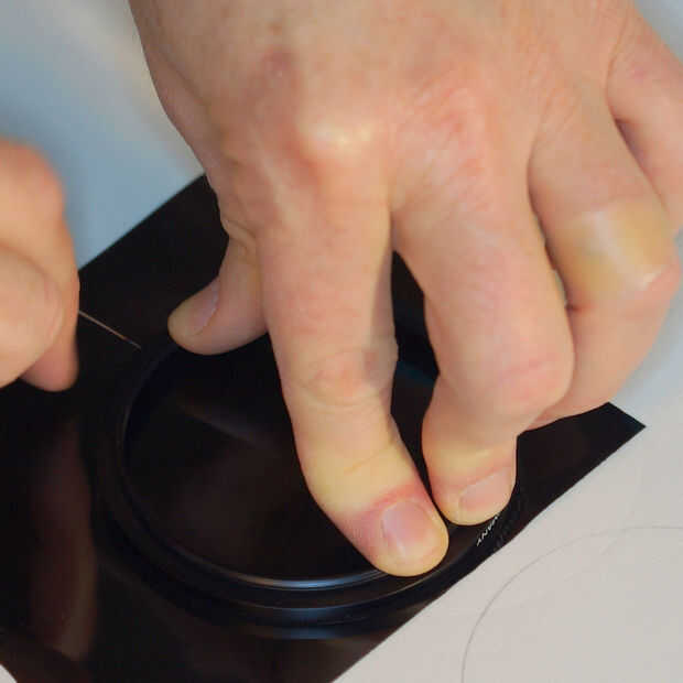 - Utilice una aguja para trazar el exterior (77mm) del filtro en la película.