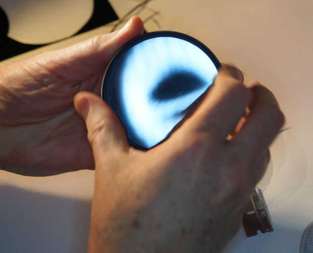 7. una vez que el círculo de la película, vea si cabe dentro del anillo adaptador (probablemente no).