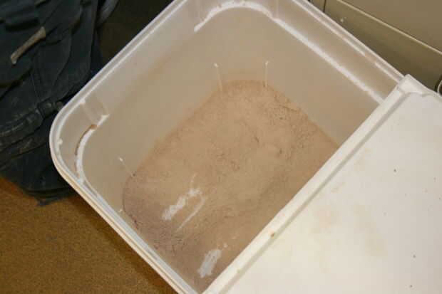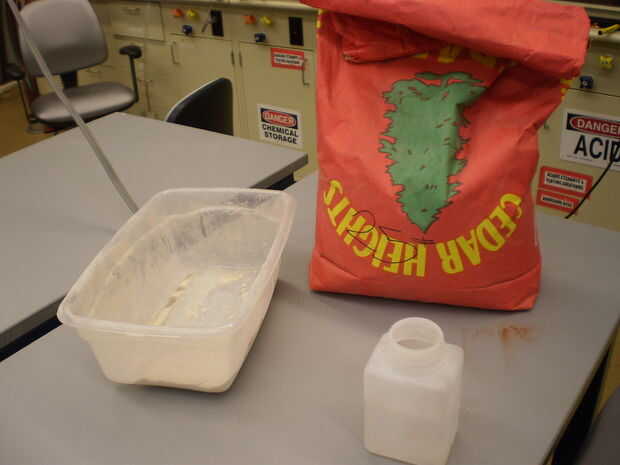 Arcilla seca. Polvo de arcilla es probablemente más fácil. (¡ ADVERTENCIA! Polvo de arcilla es extremadamente perjudicial para los pulmones! Solo use fuera, bajo una campana o en otra área bien ventilada!)