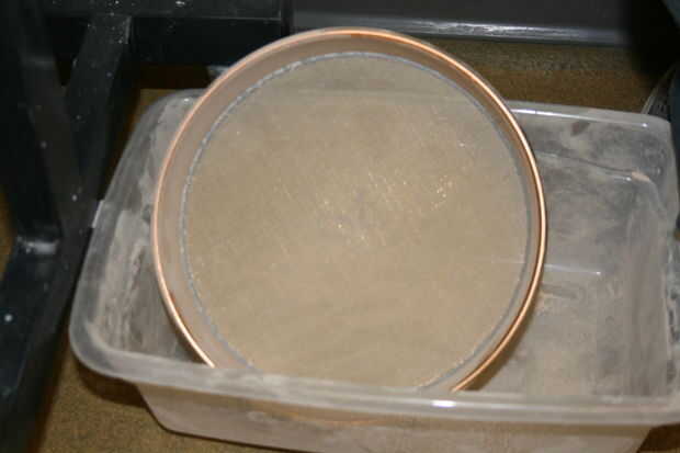Aserrín fino. Mejor obtenidas por tamizado de aserrín. Un tamiz #30 (600 Micon) tamaño funciona mejor, aunque pueden trabajar otros tamaños. Más pequeños no se recomienda, ya que será un proceso lento en el tamiz y se reducirá la tasa de filtración. Más grande puede utilizarse, hasta el tamaño de una pantalla de la ventana, aunque la calidad de filtración va a sufrir algunos.