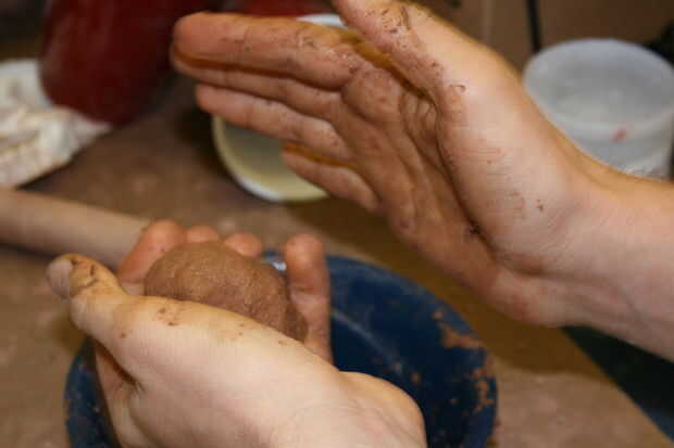 Una vez que la arcilla es realizable, cuña para más mezcla de la arcilla y elimine las burbujas desde el interior de la arcilla. Esto puede ser difícil con arcillas plásticas y en mayores proporciones de aserrín, sin embargo intenta su mejor. Algunas pequeñas burbujas en la arcilla no deben afectar significativamente la filtración.