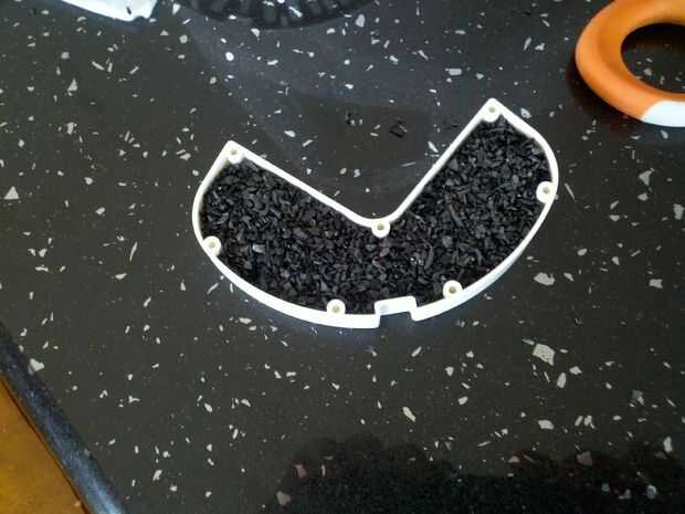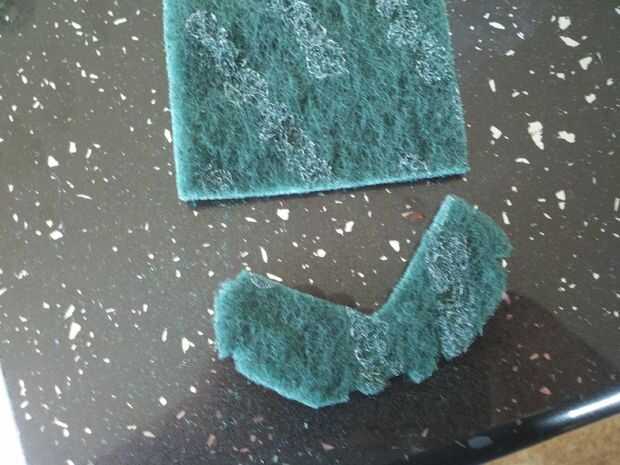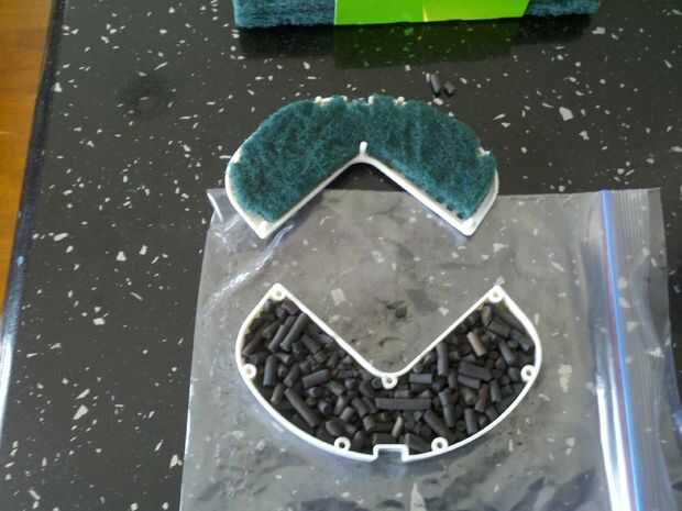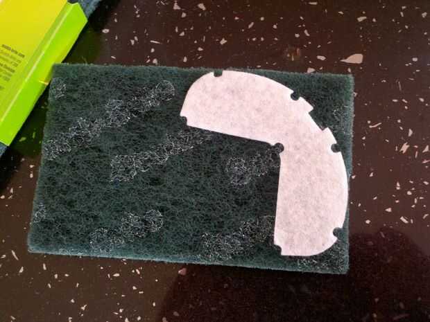 Utilice el filtro externo usado como plantilla en el verde de matorrales. Utilicé scrubbys tamaño estándar verde y fue capaz de conseguir dos de las piezas que necesitaba de uno matorrales.