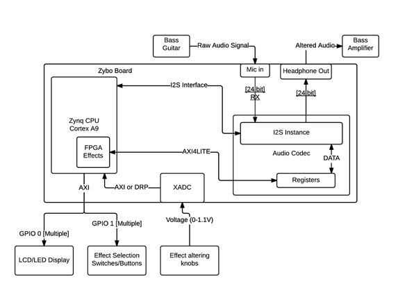 Este tutorial fue escrito usando nuestra experiencia del curso 439 EE tomado en California Polytechnic State University, San Luis Obispo en el año 2015 de la primavera. Una buena aplicación de esta tabla es diseño y desarrollo de filtros digitales en tiempo real para guitarra bajo. La idea básica de este proyecto es tomar datos audio de la entrada de línea, convertir a datos digitales, procesarlo, convertir a señal analógica y salida a través de los auriculares hacia fuera. La Junta de Zybo contiene un SSM 2603 baja potencia Audio Codec a bordo que se utiliza para recibir y transmitir audio. Este sistema de filtrado en tiempo real fue diseñado para ofrecer a los usuarios las siguientes especificaciones: usuario proporcione con dos filtros: usuarios distorsión limpia proporcionan la opción para controlar el efecto de recorte. Proporcionar a los usuarios para cierre el audio completamente. Componentes necesarios para este proyecto son: Zybo Zynq-7000 desarrollo Junta AUX cable auriculares o altavoces potenciómetros este tutorial también se supone que tiene el IDE Vivado y los conductores de Zybo ya instalados. Hay un montón de buena información por ahí acerca de cómo hacerlo si no!