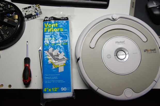 te amo mi roombas, tengo uno en cada piso. No toman el lugar de un regular funcionamiento de la aspiradora, pero se hacen una vez una cosa de la semana en lugar de una sola vez cada dos días.  Pero después de 5 a 8 carreras, los filtros roomba son bastante mucho tiro e incluso les soplar no restaura a nuevo. Por supuesto puede comprar filtros de repuesto, pero cuestan en el barrio de $12 un pedazo para la variedad aerovac.  Esta es una solución de 5 minutos que te permitirán renovar tus filtros roomba por unos 12 centavos un pop y aumento un poco de rendimiento de la operación.  Usted necesitará