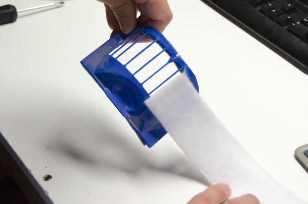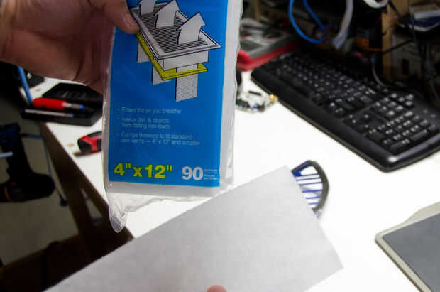 El material que decidí usar es esto registro respiradero filtro de The home depot. Es aproximadamente $4 por un pack de 12 y cada filtro puede compensar 4 filtros roomba o 48 filtro $4 (WIN!). Así que sí, no es autorizado de iRobot especificaciones de filtro. Lo probable es que no filtra así como de las cosas comunes, pero no he tenido problemas con ella en mis 3 máquinas.