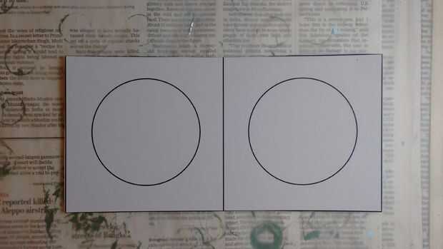 El primer paso es elegir el tamaño de los prismáticos que vas a utilizar. El sol pasa a aparecer aproximadamente el mismo tamaño en el cielo como la luna. Te sugiero mirar la luna para tener una idea de cómo va a aparecer el sol. Mis prismáticos son 15x60mm. Medir el diámetro exterior de la parte delantera de los prismáticos. Mina eran unos 72mm. Entonces hice una plantilla de cartulina con círculos de 72mm. Utilizar ambos círculos para hacer la parte delantera y trasera de soporte del filtro.