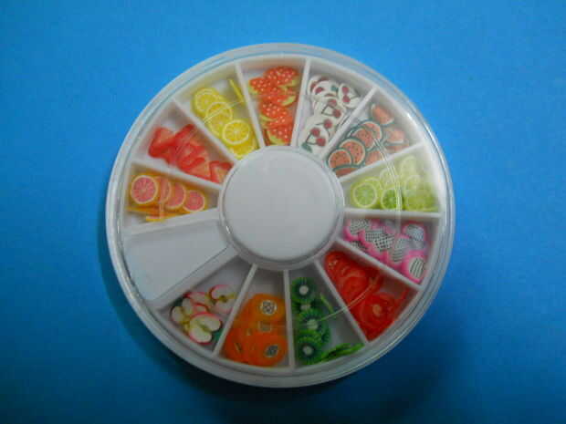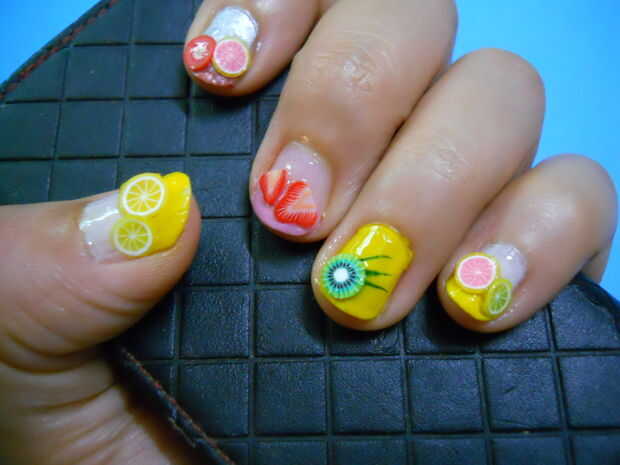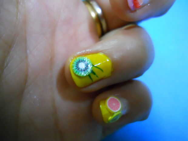 todo lo que necesitas es rebanadas de fimo, uñas, palillo de dientes, claro polaco (capa superior)